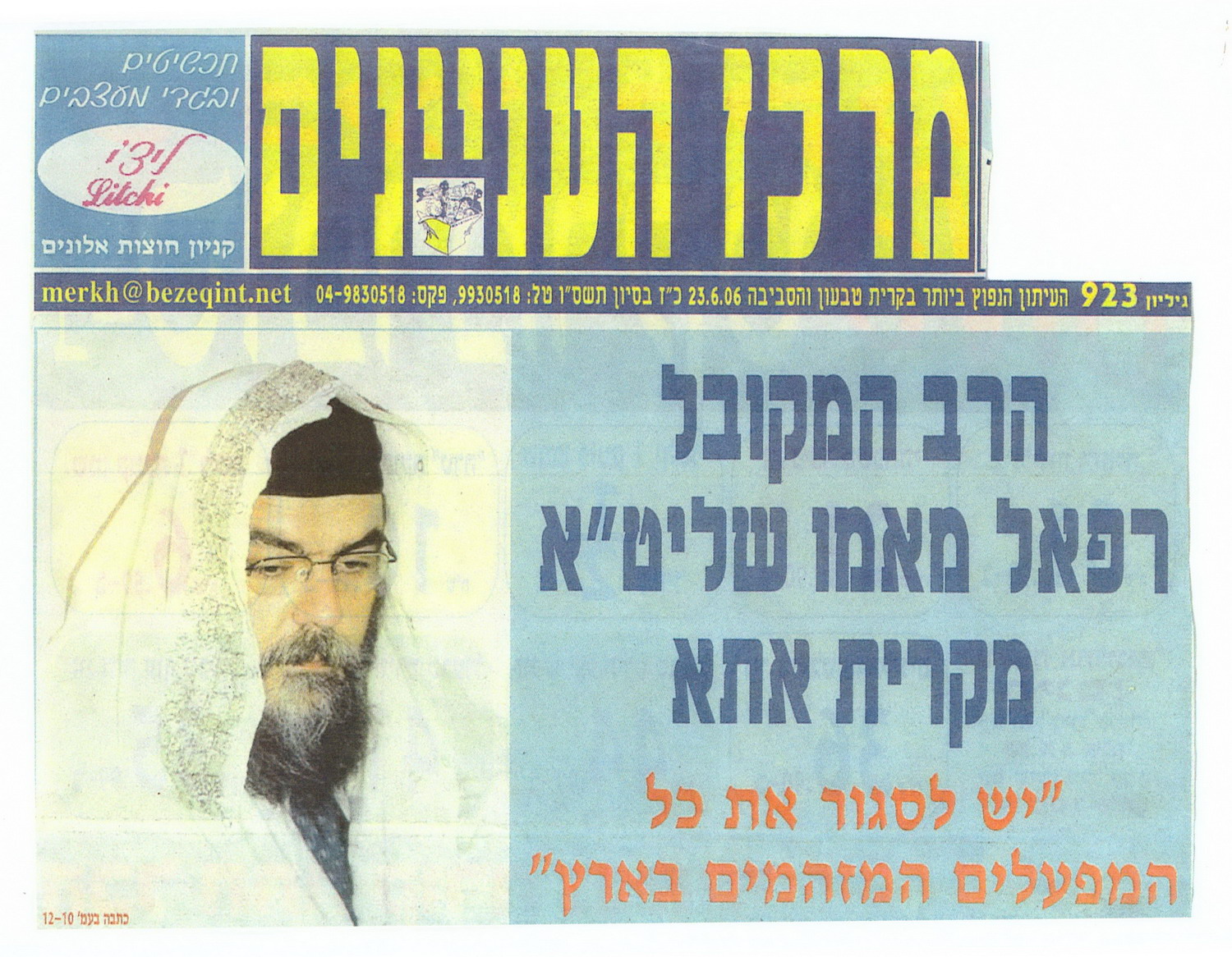 המקובל הרב רפאל מאמו – ש לסגור את כל המפעלים המזהמים בארץ