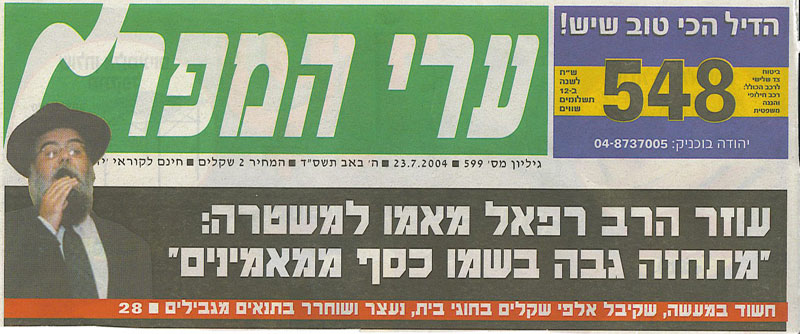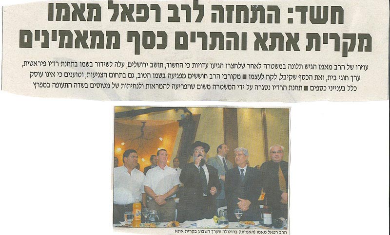 חשד: התחזה לרב רפאל מאמו מקרית אתא והתרים כסף ממאמינים עוזרו של הרב מאמו הגיש תלונה במשטרה לאחר שלחצרו הגיעו עדויות כי החשוב, תושב ירושלים, עלה לשידור שמו בתחנת רדיו פיראטית, ערך חוגי בית ואת הכסף שקיבל, לקח לעצמו. מקורבי הרב חוששים מפגיעה בשמו הטוב, גם בתחום הצניעות, וטוענים כי אינו עוסק כלל בענייני כספים. תחנת הרדיו נסגרה ע"י המשטרה לאחר שהפריעה להמראות ונחיתות של מטוסים בשדה התעופה במפרץ.